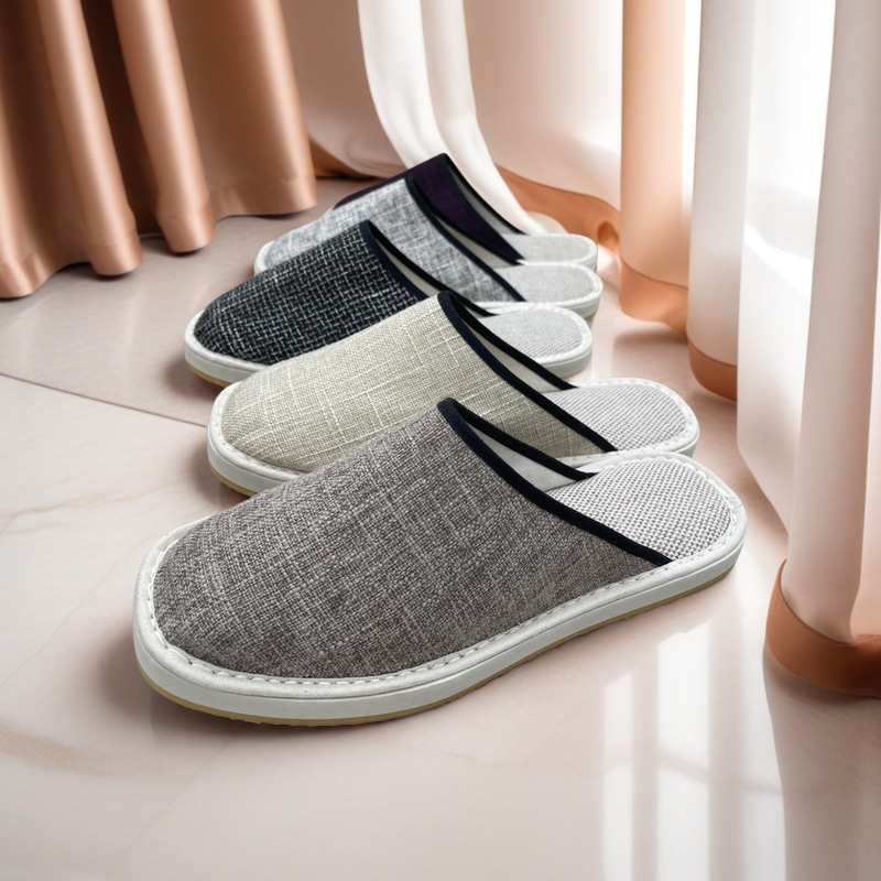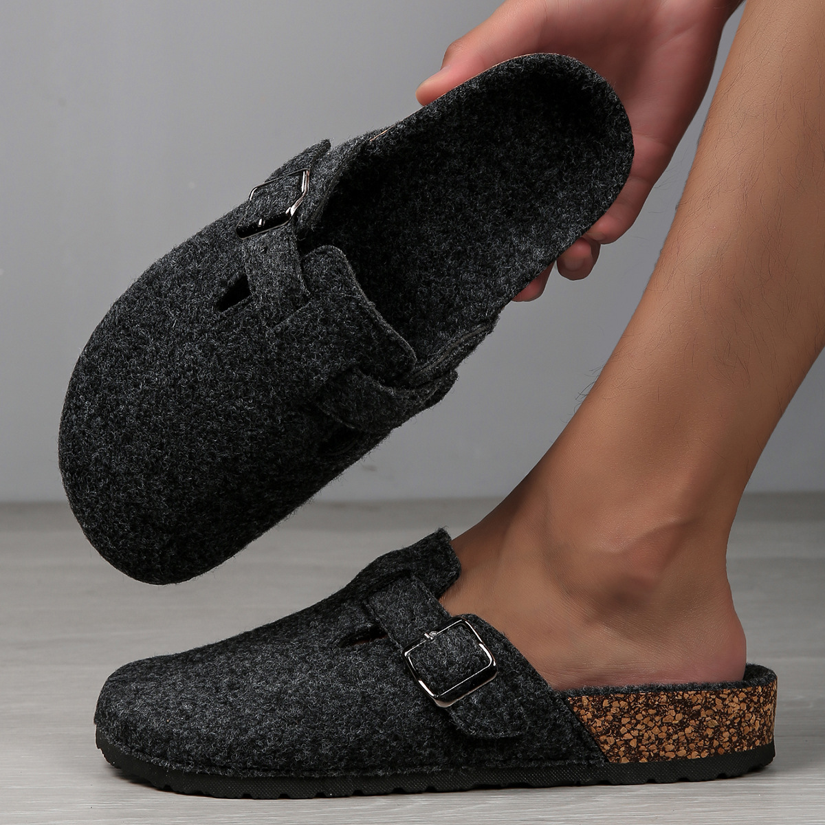 博ケン包頭半引きコルクスリッパと綿の中の滑り止め耐摩耗性室内外スリッパ秋冬