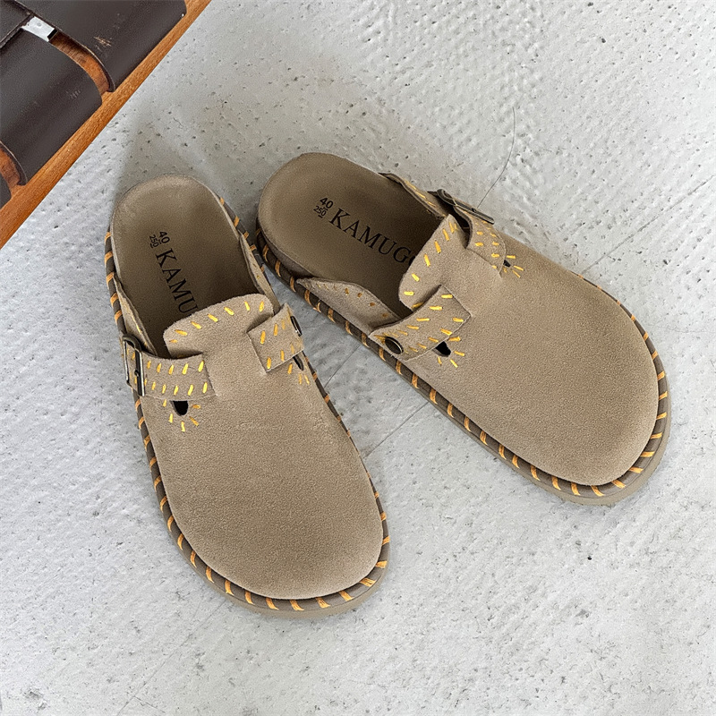 3695外着男春秋新作レトロ一足怠け者平底穆勤靴包頭ベーケン半スリッパ女