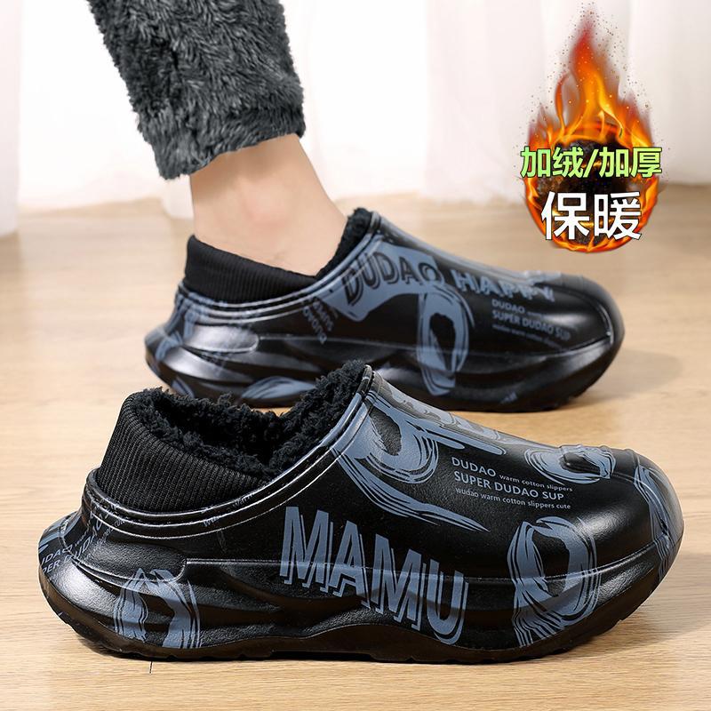 綿靴男は冬に家にベルベットをつけて保温毛羽立ちを厚くした靴の外に防水滑り止めの大きいサイズの屋外包頭スリッパを履いている