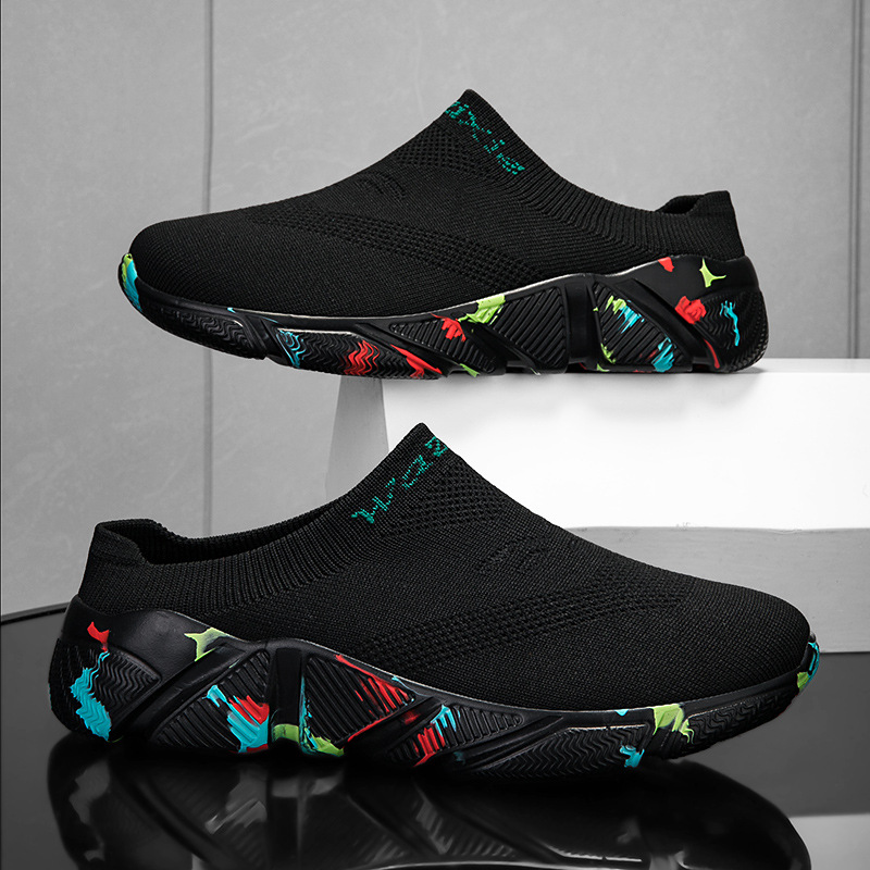 ネット布半引き板靴男夏男靴2024新型怠け者がスリッパを漕ぐ学生のレジャー靴男タイプ