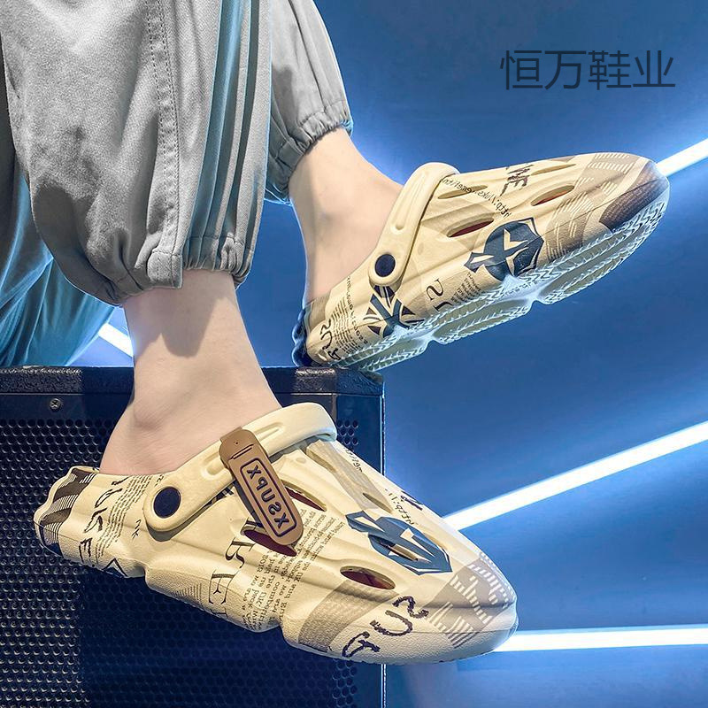 包頭は男性2025夏の新型の屋外で滑り止めビーチの穴のスリッパを履いています。