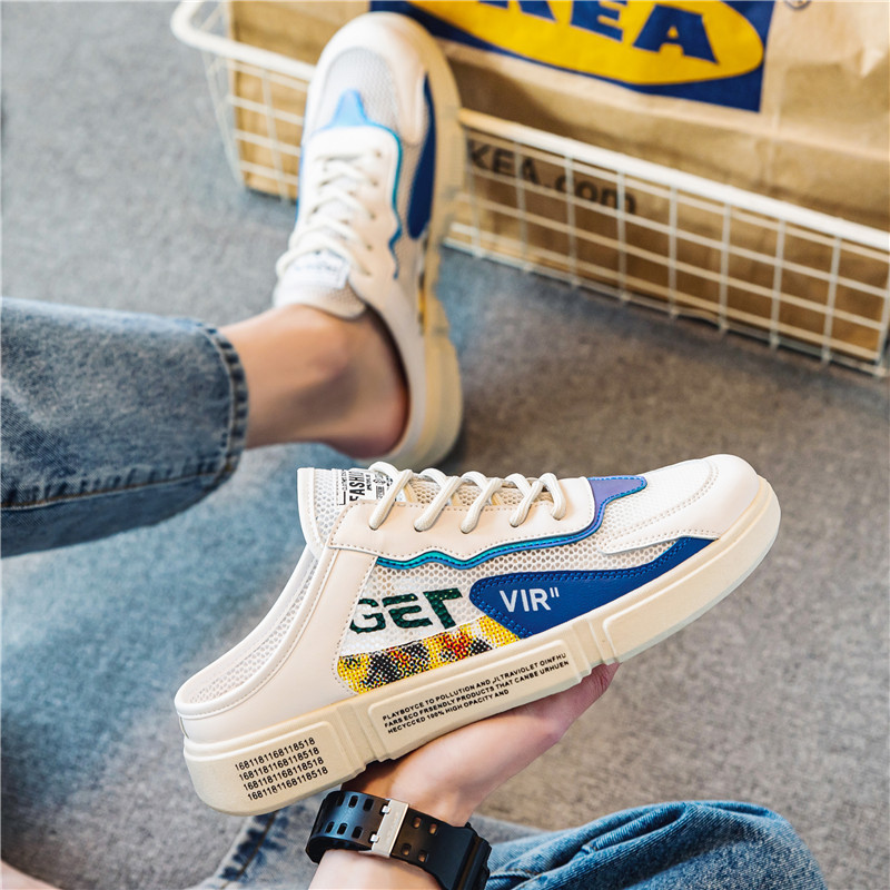 ネット布半引き板靴男夏男靴2024新型怠け者一足でスリッパを漕ぐ学生カジュアル靴男型