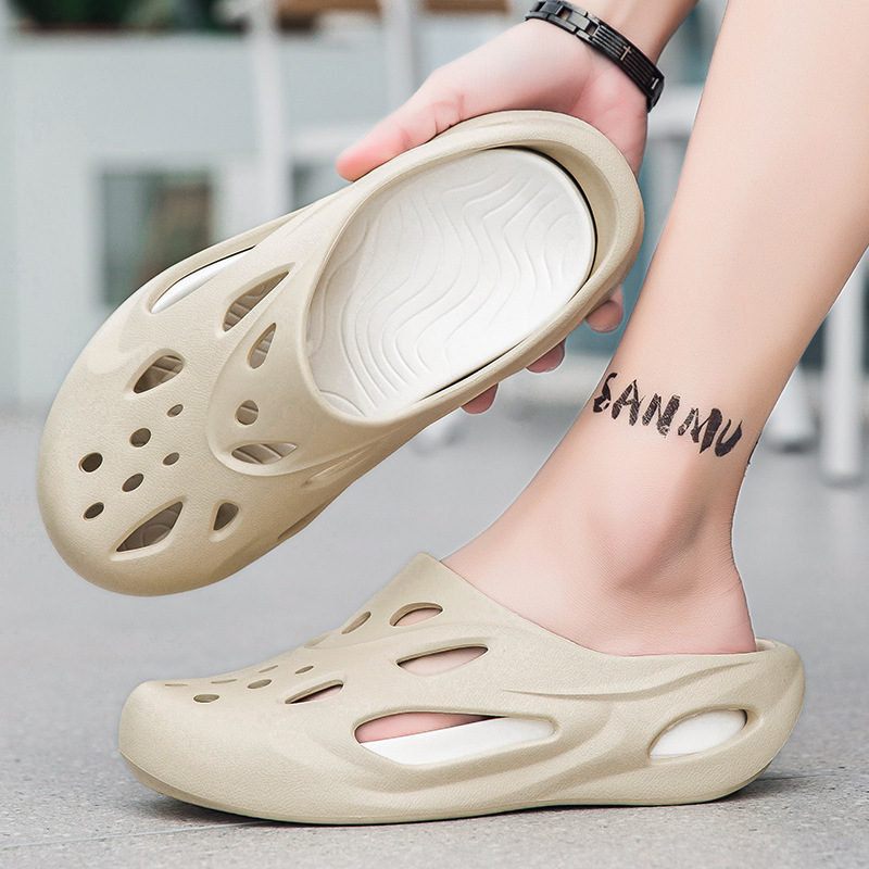 包頭は男性2025夏の新型の屋外で滑り止めビーチの穴のスリッパを履いています。