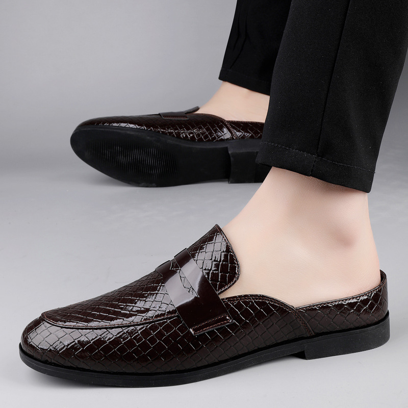 [カスタマイズ] クロスボーダー大きいサイズの革靴 2025 夏の新ローファー男性用クロコダイル柄ハーフスリップ大きいサイズの男性靴