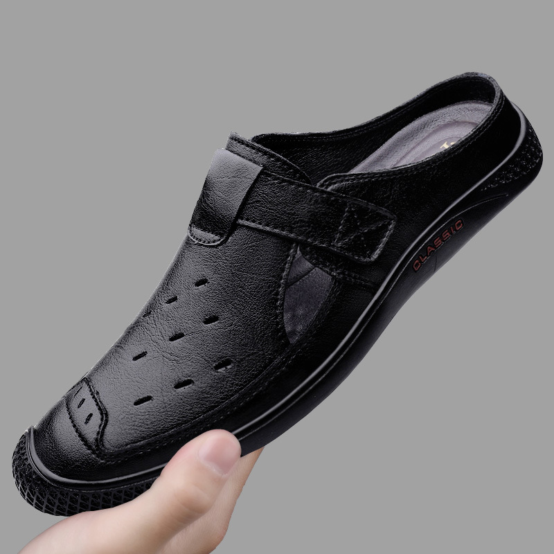 半スリッパ男本革ファッション夏の大きいサイズ45通気包頭サンダル46足のかかとのないカジュアルな靴