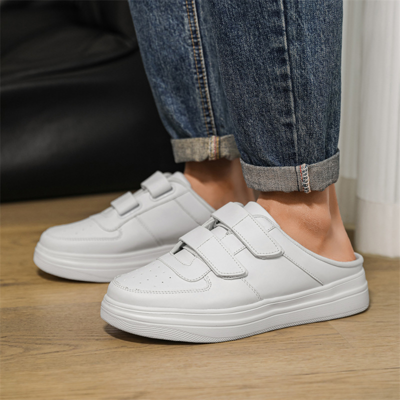 2025 夏クロスボーダーメンズハーフスリッパ純白スリッパメンズファッション白靴包頭スリッパ大きいサイズ外国貿易