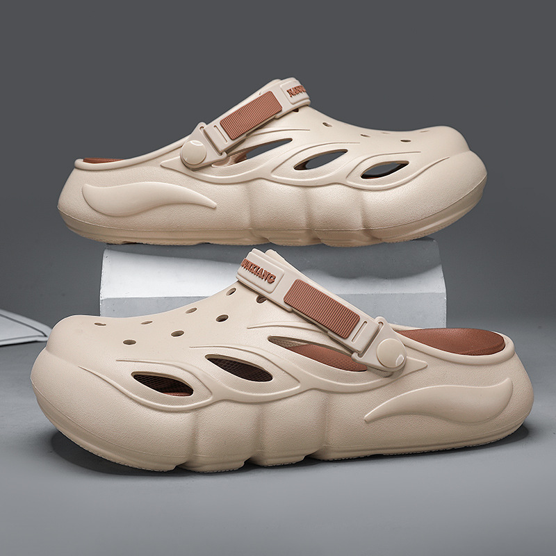 メンズ下駄 2025 新しい包頭滑り止めアウタースリッパトレンディな通気性のある 2 色のビーチシューズ防湿サンダル