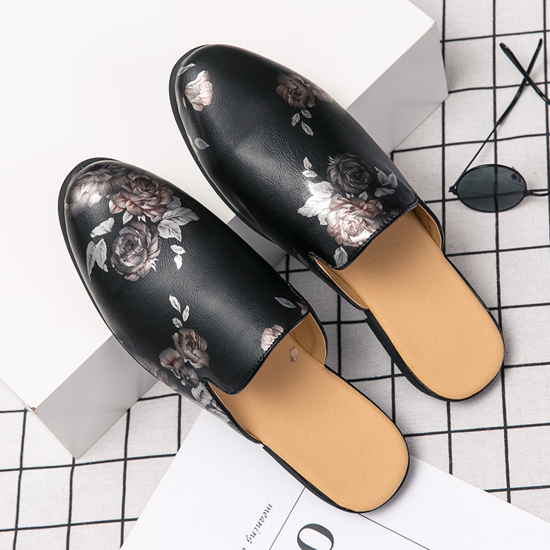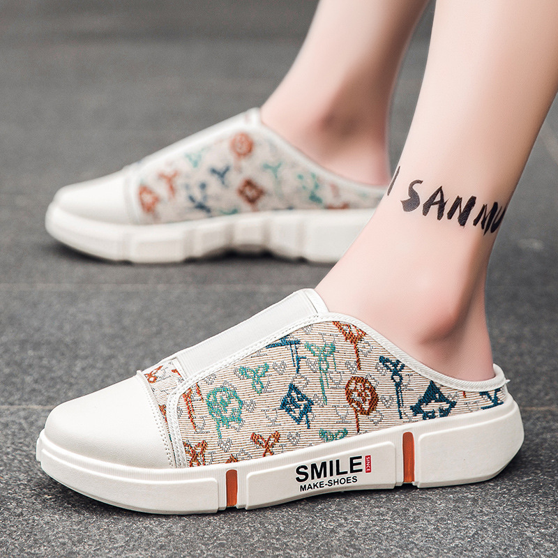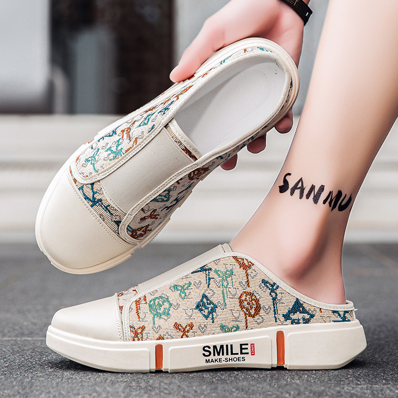 国境を越えたスニーカー男夏の通気運動レジャープリント板靴男はかかとのない柔らかい底の半スリッパを漕ぐ