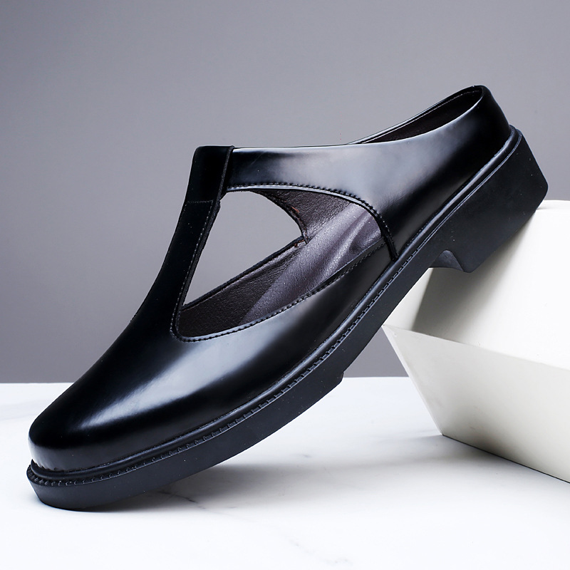 夏のメンズハーフスリッパカジュアルスリッパ大きいサイズ通気性外国貿易アウトドアカジュアル紳士靴本革ハーフスリッパメンズサンダル