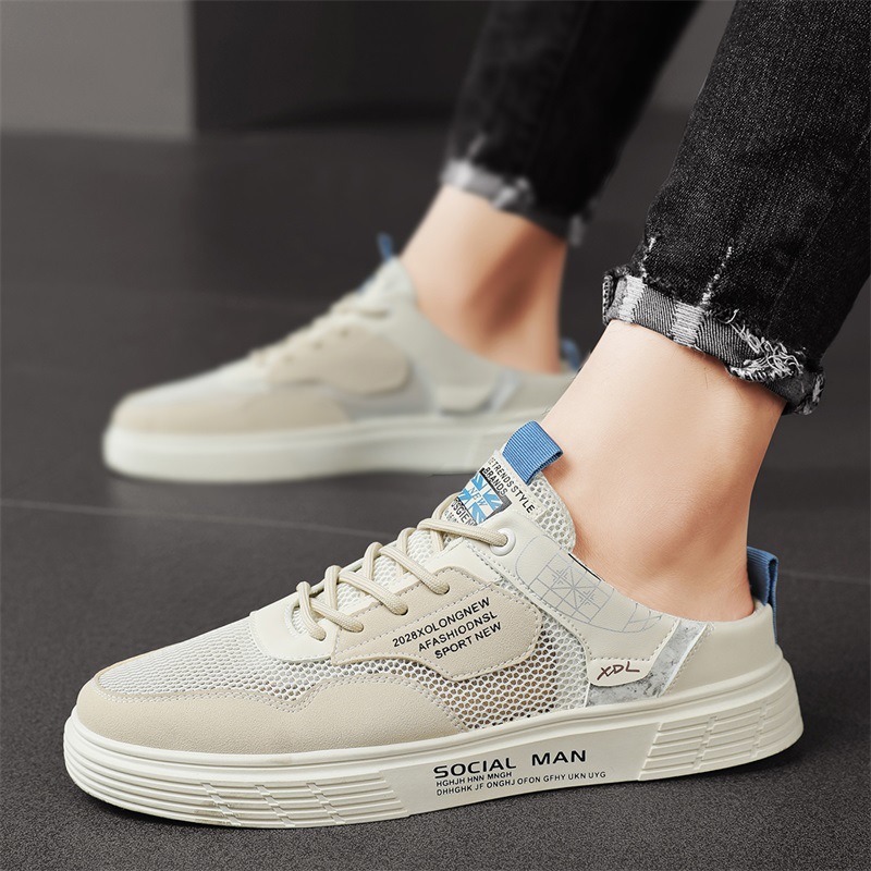 ネット布半引き板靴男夏男靴2024新型怠け者一足でスリッパを漕ぐ学生カジュアル靴男型