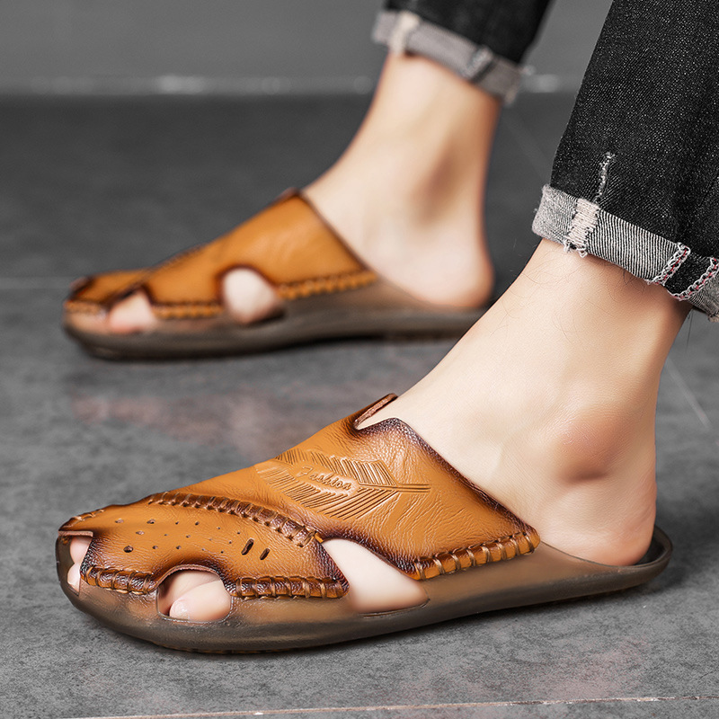 クロスボーダー紳士靴、本革ハーフスリッポンサンダル、メンズサマービーチシューズ、メンズスリッポン、カジュアルつま先スリッパ