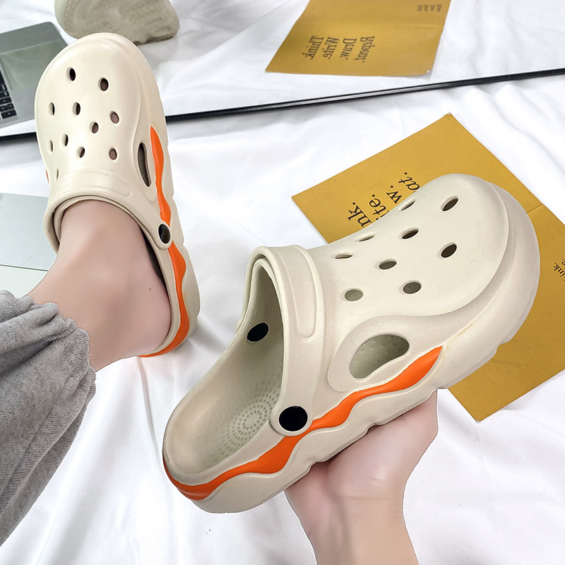 2025年夏の男性用クロックスシューズ、新しい厚底カジュアル大きいサイズ通気性のあるカラーブロックビーチつま先スリッパ男性用