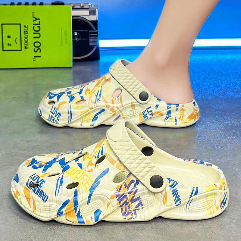 洞靴男韓版潮流男性花園スリッパ夏滑り止め包頭軟底ビーチカップル工場卸売り