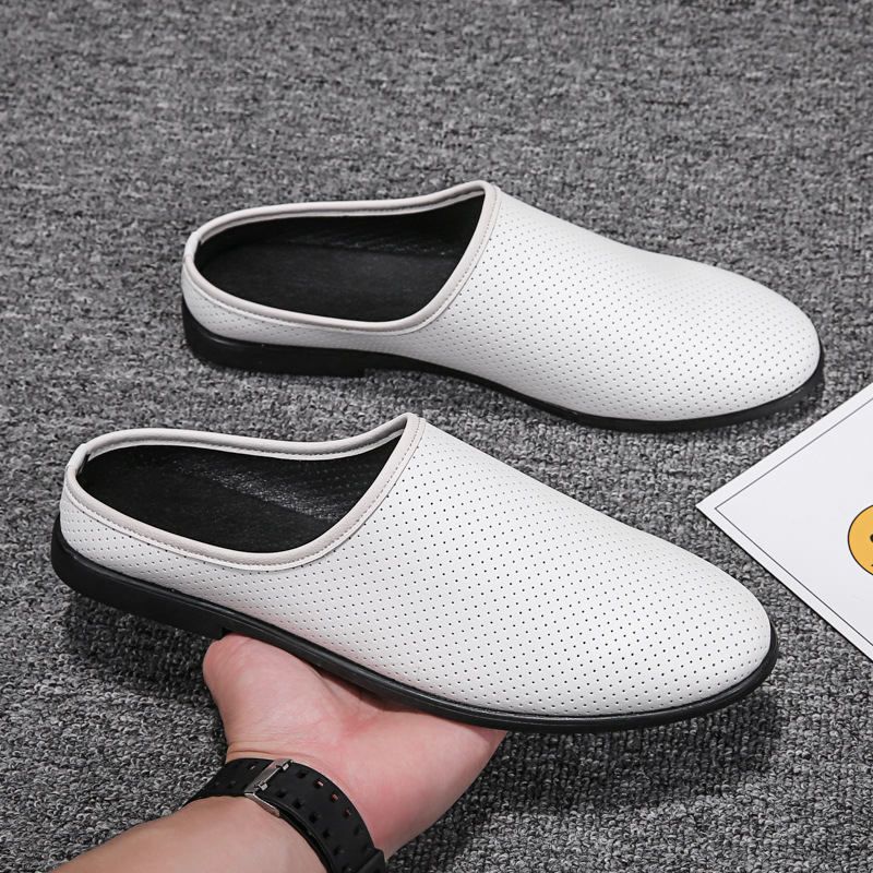 大きいサイズの紳士靴 2025 夏の新通気性包頭ハーフスリップヒールレスメンズカジュアルスリッポンビーニーシューズ 47