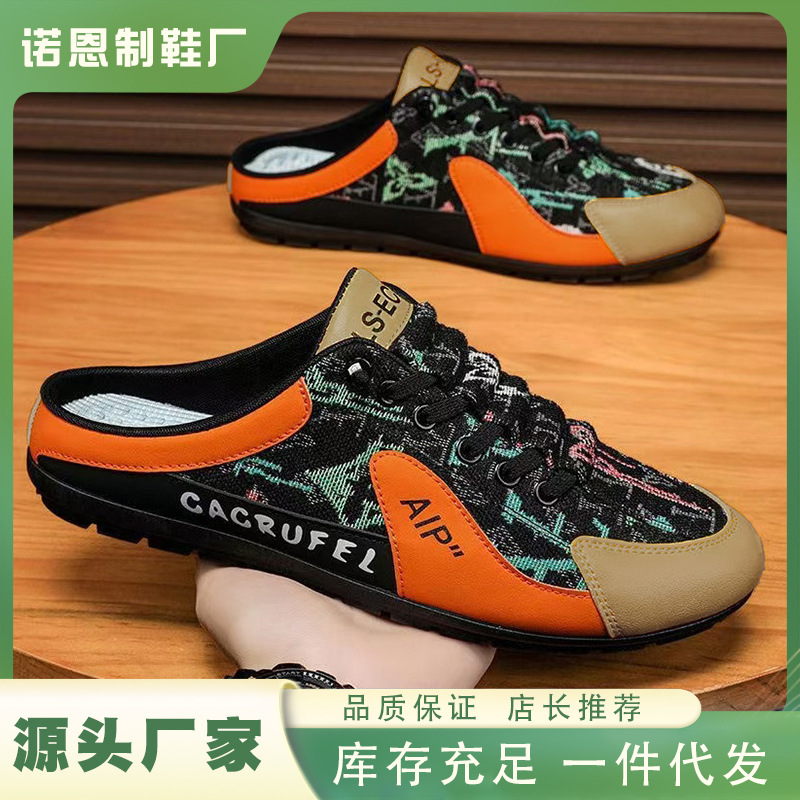 ネット布半引き板靴男夏男靴2024新型怠け者一足でスリッパを漕ぐ学生カジュアル靴男型