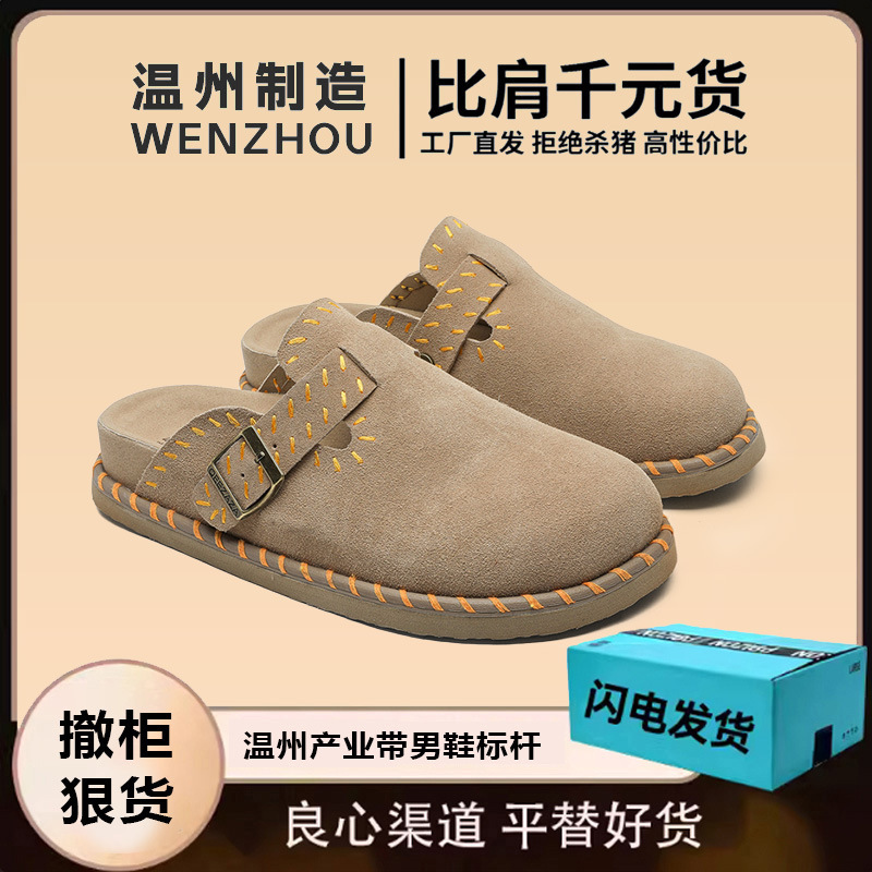 ベーケン靴男女同タイプの包頭半ドラッグ2025新型外着カジュアル怠け者クロスボーダー大サイズコルク博ケンドラッグ