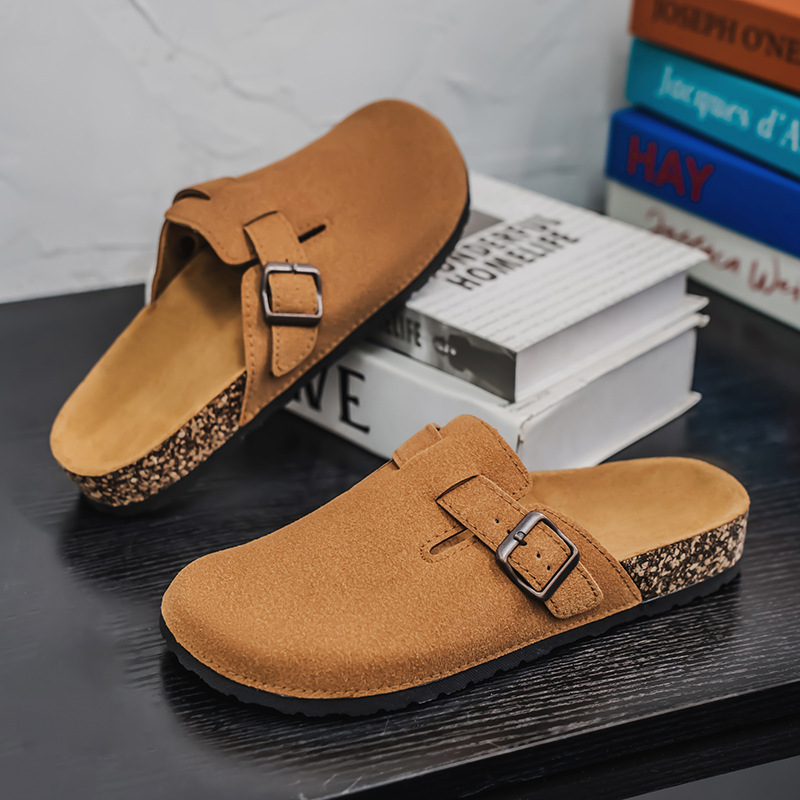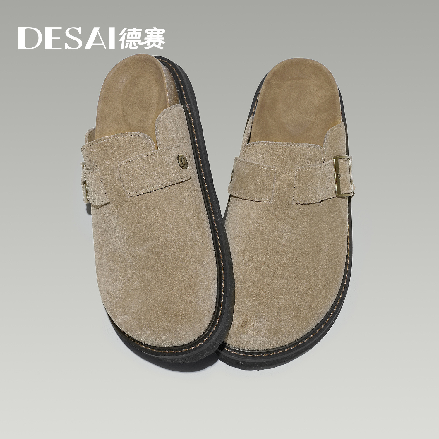 2025 春と秋のレトロな厚底レイジーバックトゥハーフスリップメンズ本革ソフトソールビルケンシュトックシューズアウターウェア