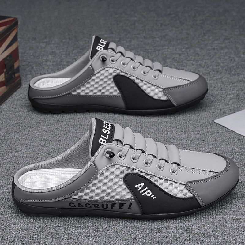 メンズ夏の新しい通気性メッシュハーフスリッパスリッポンアウトドア怠惰な靴トレンディな多用途通気性メッシュシューズ