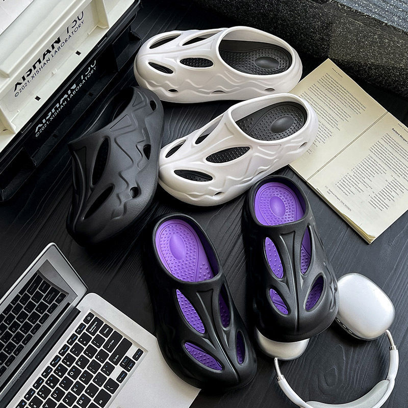 男性の穴の靴2024の新型のカップルの厚い底のスリッパの包頭は涼しくて滑り止めのレジャーの柔らかい底の海辺のビーチの靴を引っ張ります。