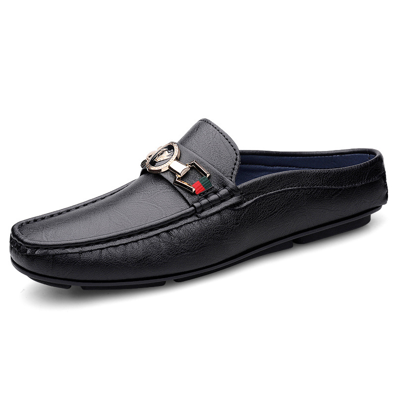 ハーフスリッポンカジュアルレザーシューズカジュアルレザーシューズメンズ牛革メンズビーニーシューズトレンディな夏の新しい包頭スリッパ