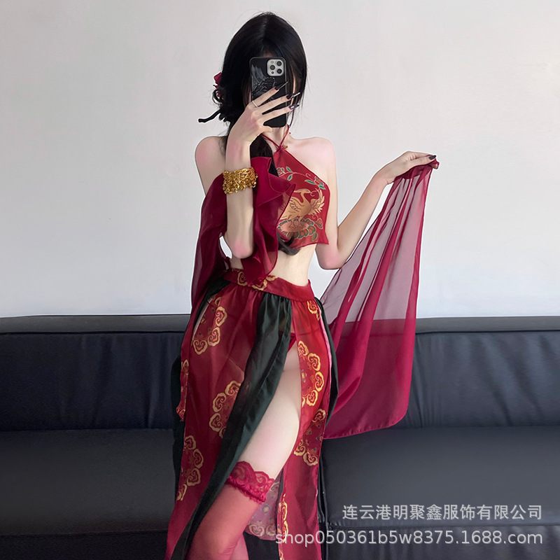 趣味下着古風敦煌飛天異域漢服制服セクシープリント透視腹兜激辛激情代発