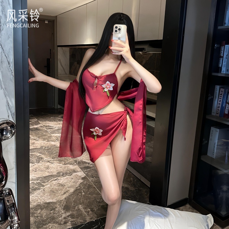 洞窟花嫁着用セクシーな下着セクシーな古典的な制服誘惑シースルー腹巻漢服パジャマセット F207