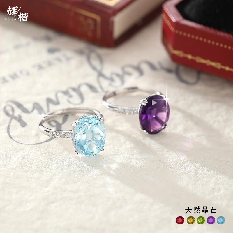 Huikai ジュエリー新 s925 シルバー天然アメジストトパーズ 10*12 オーバルラディアンリング Mingyuan スタイル