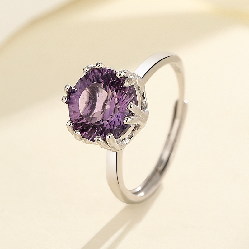 S925 シルバーアメジストホワイトクリスタルリングニッチハイセンスジュエリーレディースジュエリーヨーロッパとアメリカのパーソナライズリング