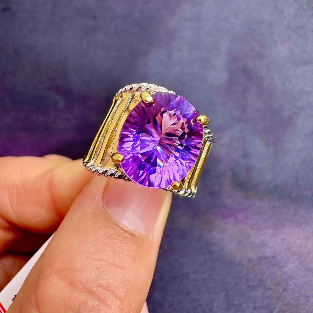 钰天然紫水晶指輪紫彩宝指環復古アクセサリー工場卸売り代理CB3092905