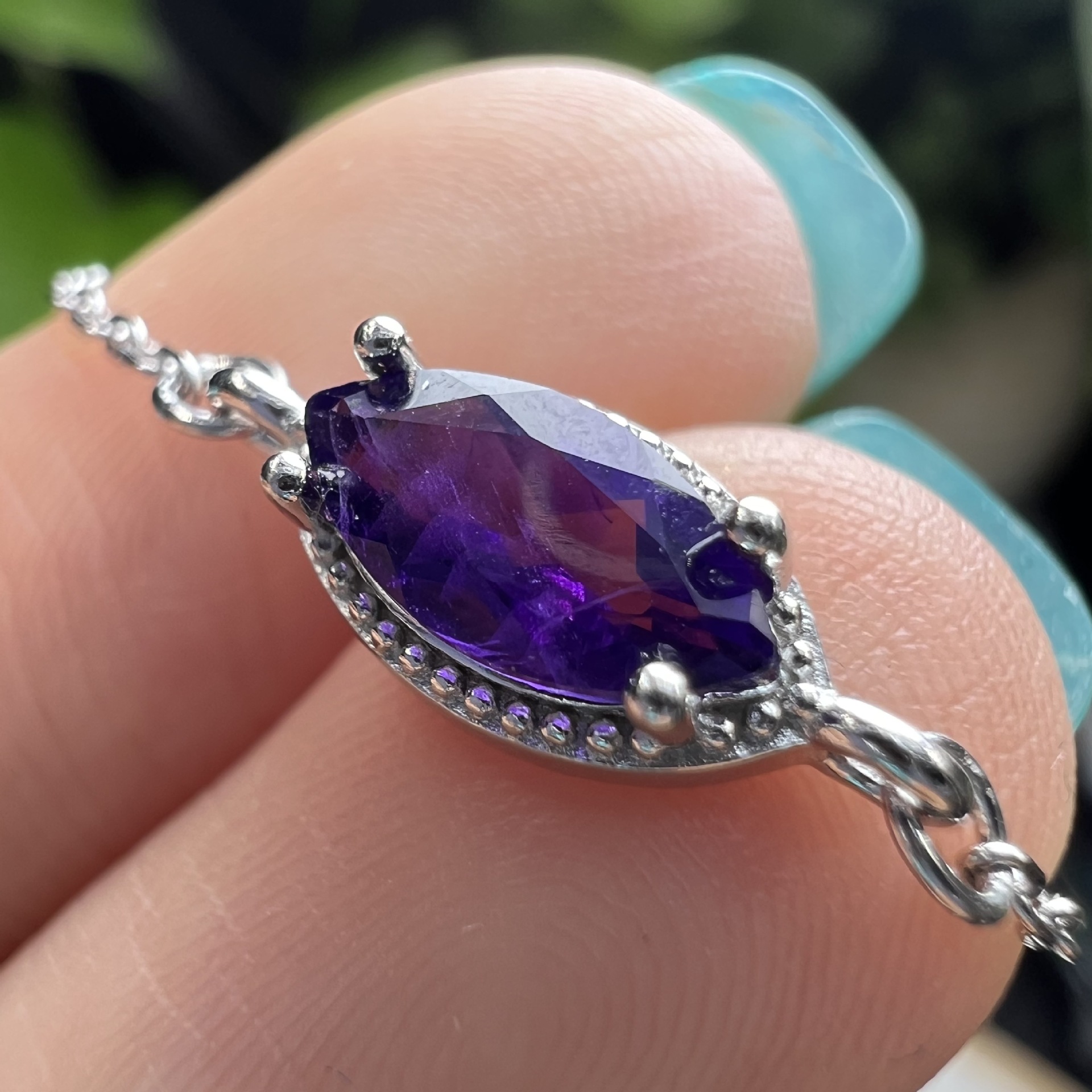 天然アメジストタッセルリング、S925シルバー象嵌、クリスタルはクリーンで多用途、ギフトや個人使用に最適です。
