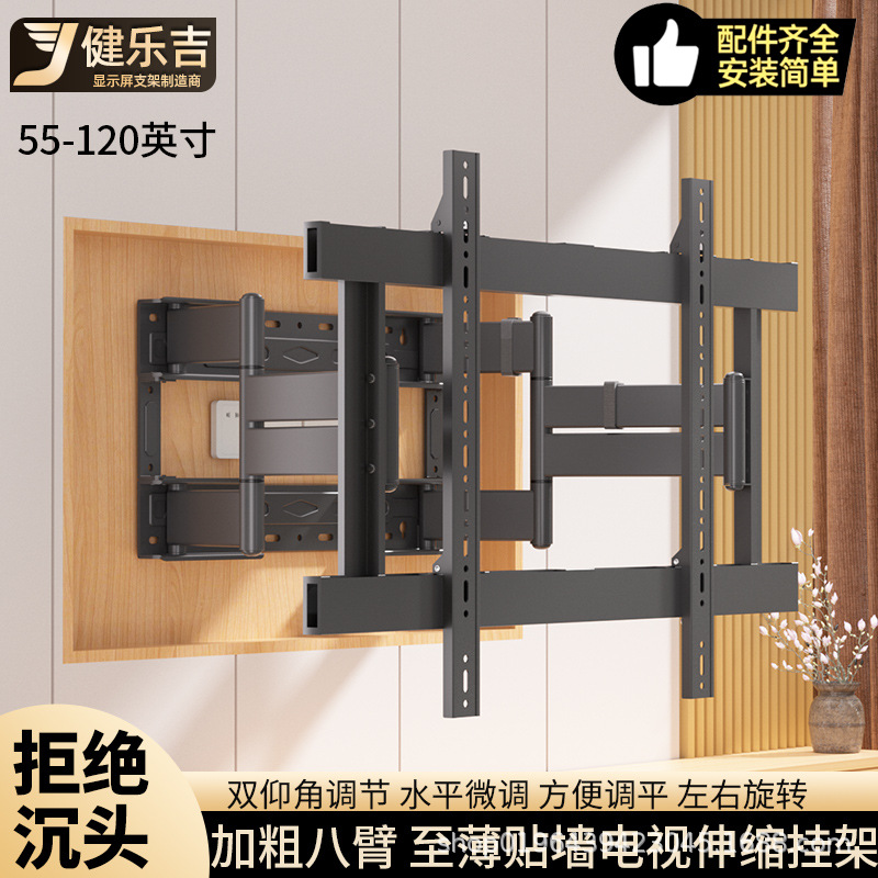 超薄型大画面テレビラック75 85 98 120コンセントの高さを避けて調整できる埋め込み伸縮8アームブラケット
