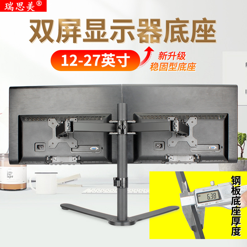 コンピュータディスプレイベーススタンド二重スクリーンデスクトップスタンド高さ調整可能二重スクリーンステッチ回転棚24インチ