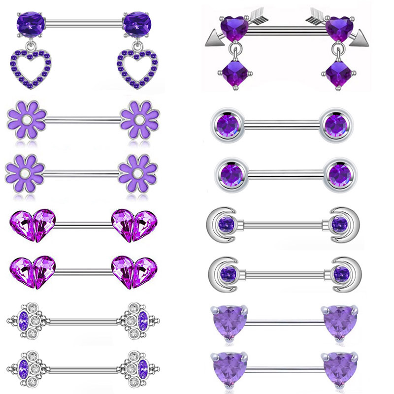 欧米のクロスボーダーのステンレスの紫色のまっすぐな棒の愛の乳環の花のペンダントの体のチェーンの乳釘の穿刺のアクセサリの卸売り