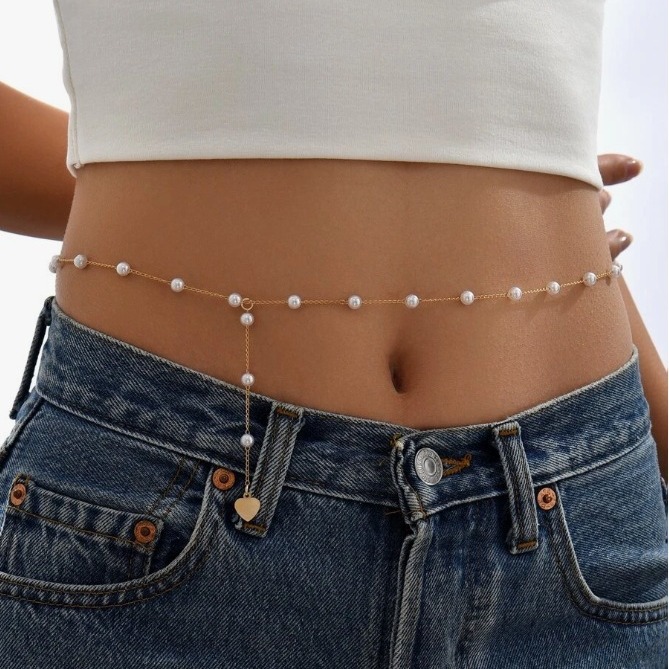 欧米のクロスボーダーの装飾品の気質のファッションは真珠のフリンジの桃の心の腰のチェーンのセクシーな個性の装飾の女性の体のチェーンをまねます。