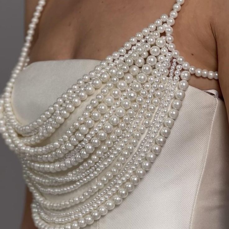 欧米風で人気の、細見え効果のあるセクシーで誇張された、重厚な手作りビーズの多層パールショール、セクシーなボディチェーン