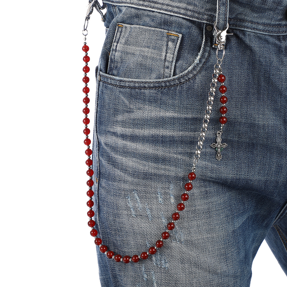 ヨーロッパとアメリカの人気のパンツチェーンブルーターコイズクリスタル瑪瑙ビーズニッチウエストチェーン手作りボディチェーン卸売男性と女性