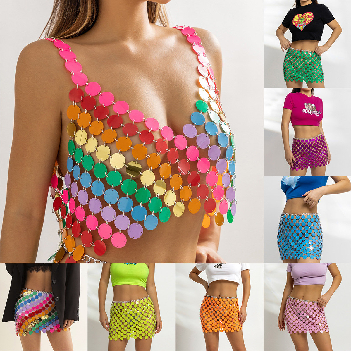 ヨーロッパとアメリカのクロスボーダージュエリーホットガールセクシーなスパンコールボディチェーン女性のカラフルなナイトクラブスカートカラフルなスパンコールスカートウエストチェーン