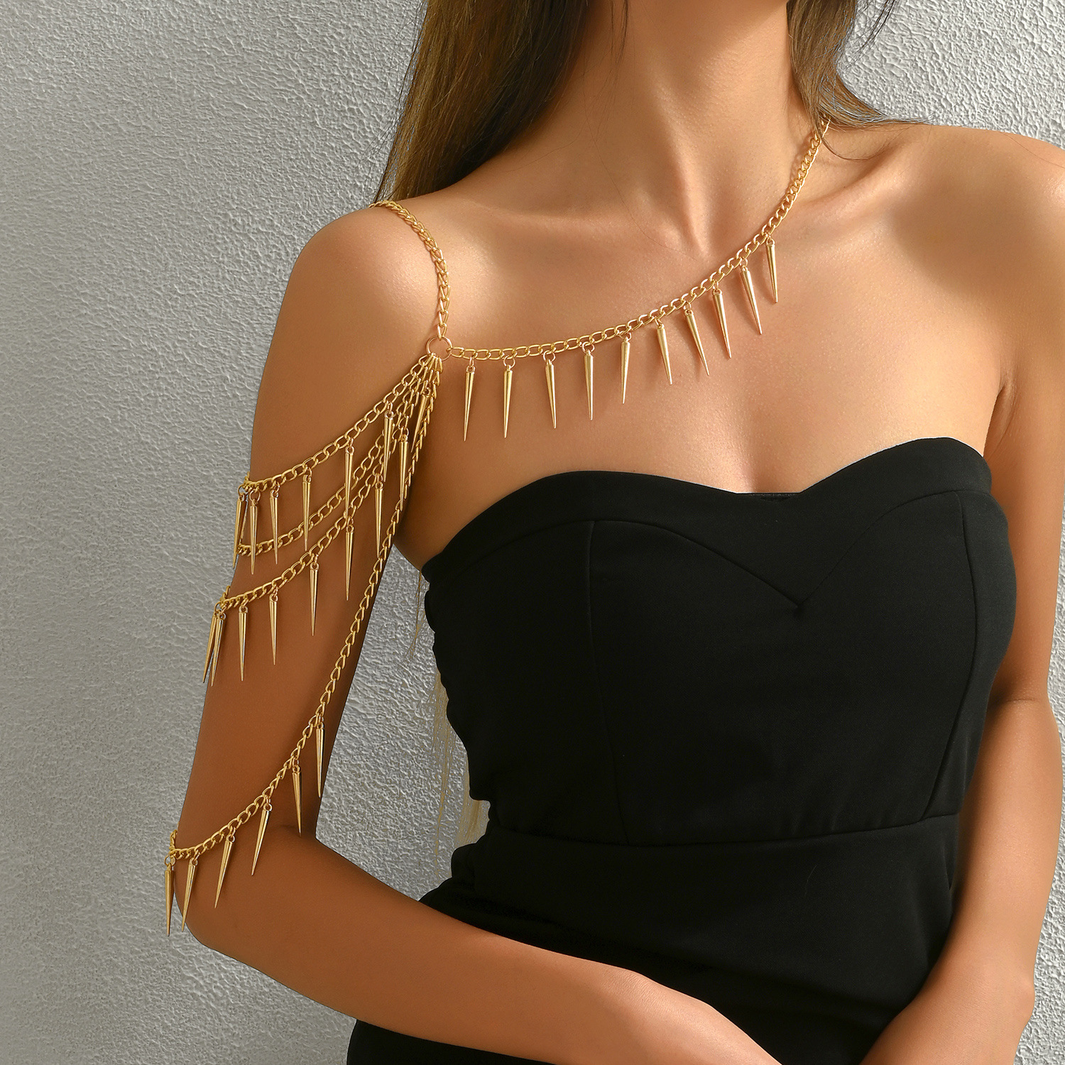 ヨーロッパとアメリカのファッションタッセルバックチェーンライト高級多層ビーチパーティー高貴な女性のショルダーチェーンアクセサリー HK0023