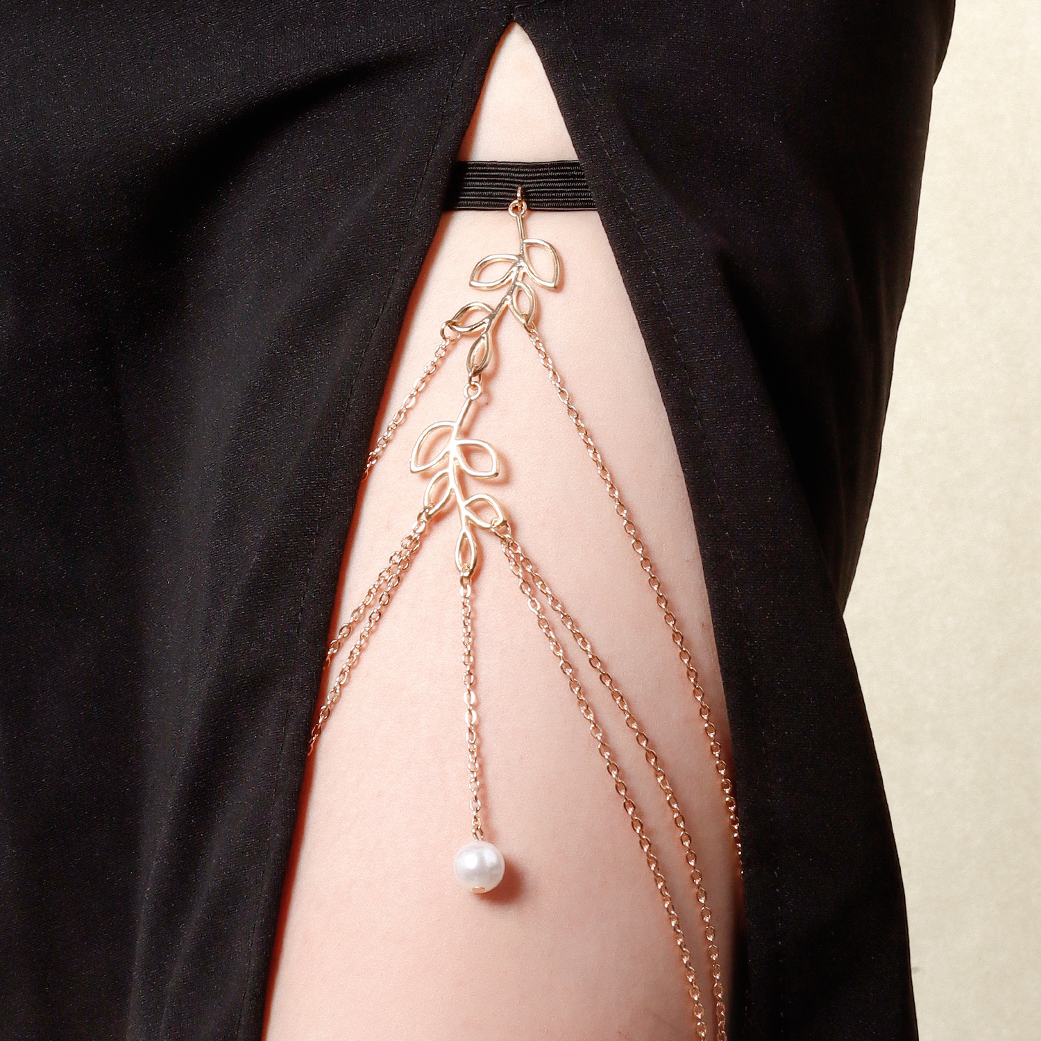 貿易ジュエリーセクシーなビーチスタイルメタル中空葉レッグチェーン女性のためのシンプルで多用途な模造真珠のボディチェーン