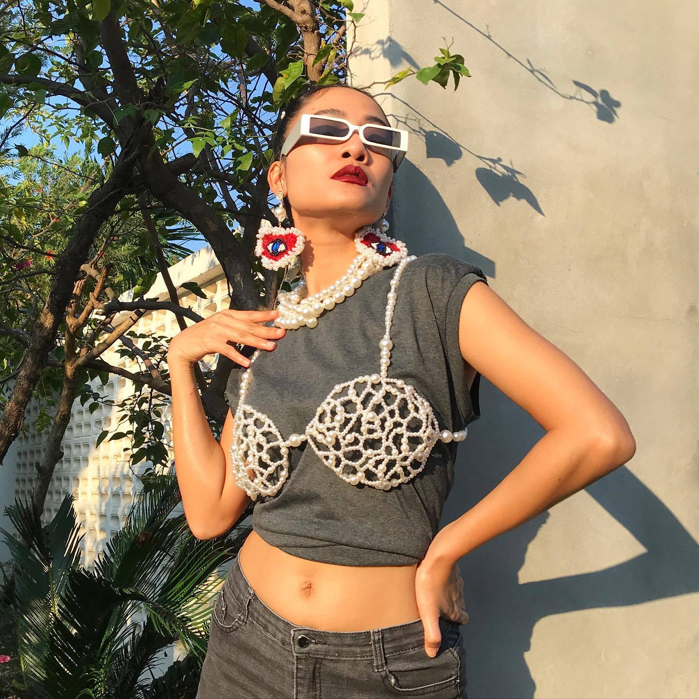 ヨーロッパとアメリカのインターネットセレブの不規則なビーズブラチェーン中空バックレスサスペンダーボディチェーンセクシーな誇張手織り