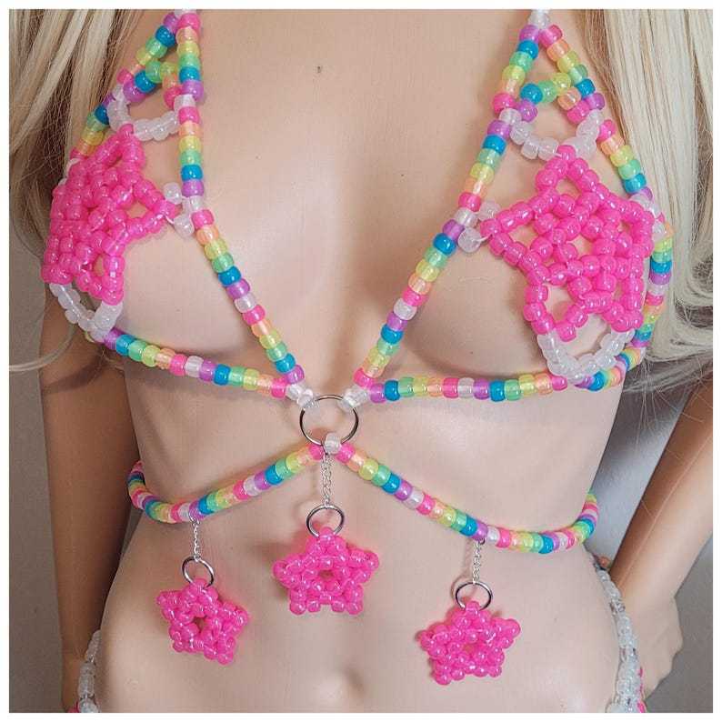 ヨーロッパとアメリカの音楽祭パーティー発光ビーズビキニチェストチェーンファッショナブルで美しい虹色の手織りボディチェーン