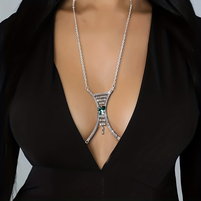 新しいファッション多用途アクセサリーハート型グリーンラインストーン胸チェーンビーチビキニペンダントボディチェーンチェーン