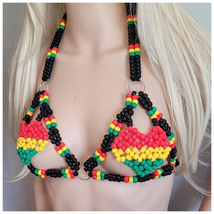 ヨーロッパとアメリカのレトロな虹色のビーズブラチェーンラブトライアングル幾何学ボディチェーンリゾートビーチビキニチェーン