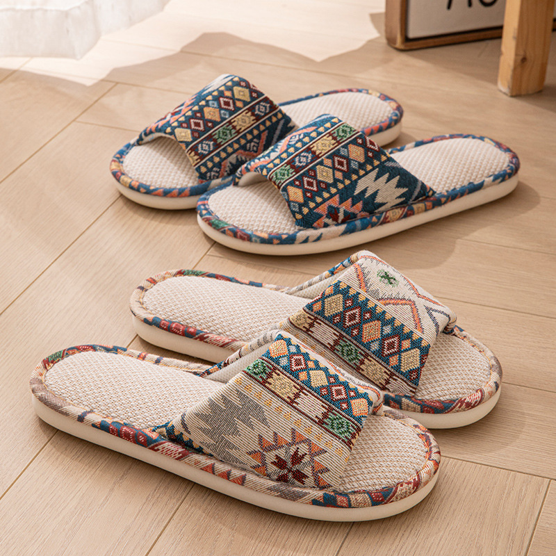 リネンスリッパメンズ春と秋屋内サイレント通気性家庭用滑り止め四季メンズ卸売サンダル