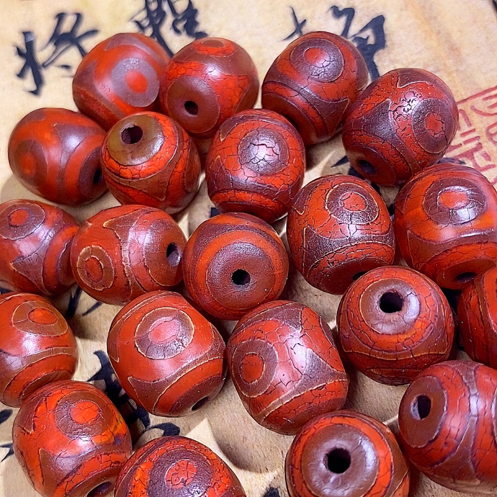 チベット式の古い瑪瑙の火はオレンジの皮の紋様の9つの目の財神の天珠の模様の古法を供えて古い金の風化の紋様の天珠を作ります。