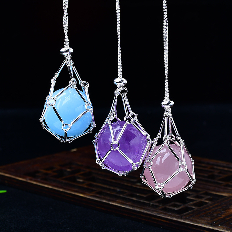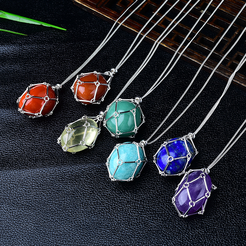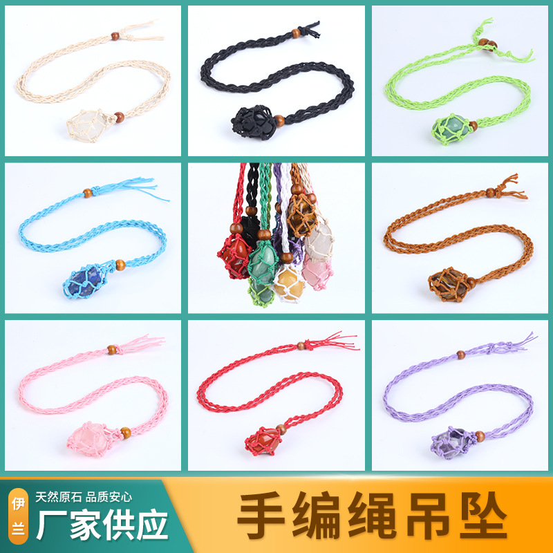 天然水晶手編み網兜ペンダント各種水晶手編み紐ネックレス手作り編み紐ペンダント