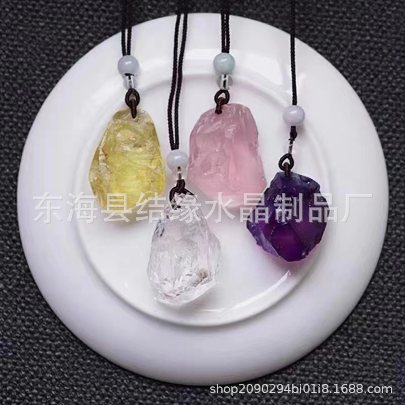 クロスボーダー天然水晶原石ネックレス黄水晶砂利ペンダントdiyアクセサリーアクセサリー不規則水晶ペンダント