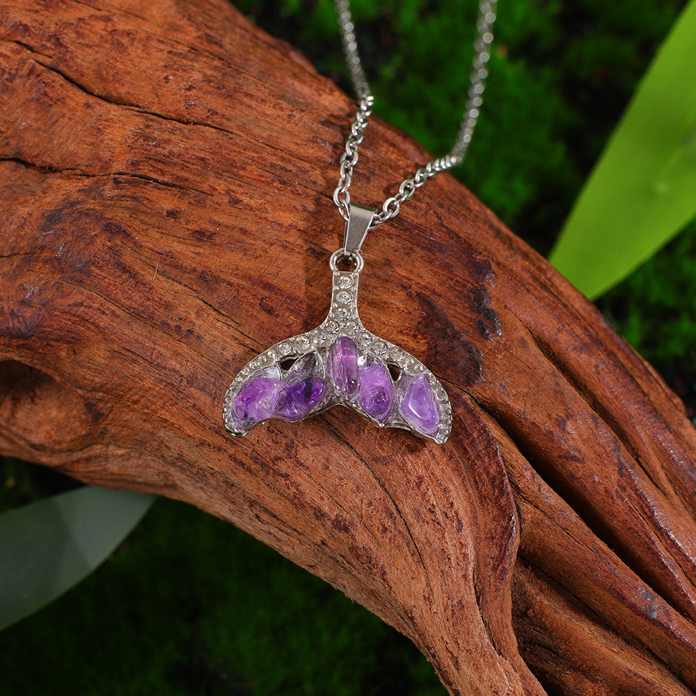 天然紫水晶美人魚尾金ペンダント欧米のアクセサリーに水晶原石を入れてdiyアクセサリーを飾って国境を越えた