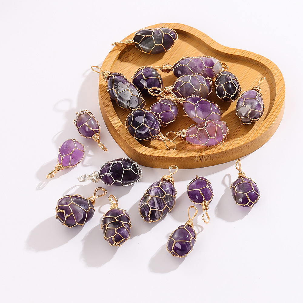 クロスボーダー天然紫水晶巻きペンダント不規則水晶原石ネックレスdiyアクセサリーアクセサリー紫晶ペンダント