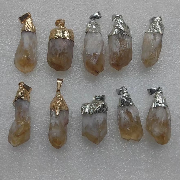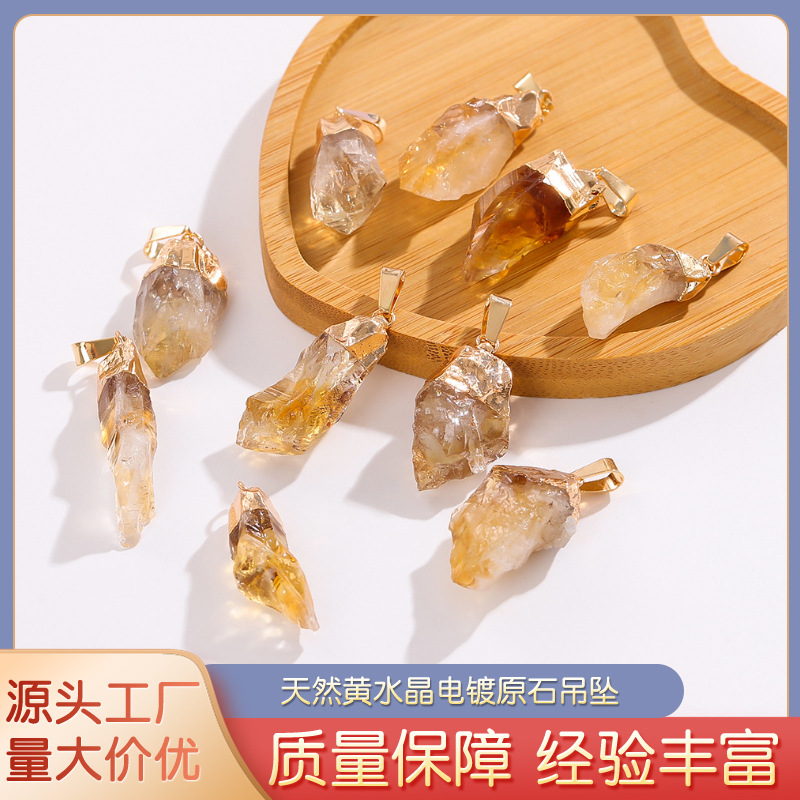 天然黄水晶ペンダントメッキ原石不規則ネックレス水晶砂利ペンダントdiyアクセサリークロスボーダー